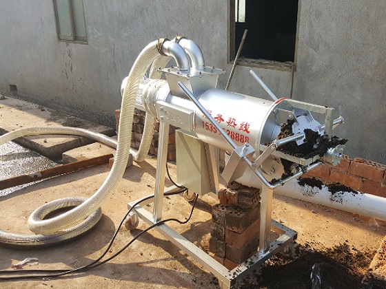 用液下泵將原糞便提高送往牛糞處理機內,擠壓成型絞龍將糞水慢慢引向人體正前方,另外不斷提升外緣的工作壓力,驅使原材料中的水份在邊壓帶濾的功效下擠壓網篩,排出排水管道。牛糞處理機的工作中是持續的,其原材料持續的提高至人體內,外緣的工作壓力持續擴大,當大到一定水平時,就將倒料口頂開,擠壓擠壓成型口,做到擠壓成型進料的目地。假如注入的排泄物水過多也會經溢液管排在原化糞池中也具有了拌和的功效,經螺旋式擠壓成型過慮分離出來出的污水可立即配送至沉砂池等。以便把握進料的速度水分含量,能夠 調整服務器正下方的平衡塊,以做到令人滿意適度的含水量。
